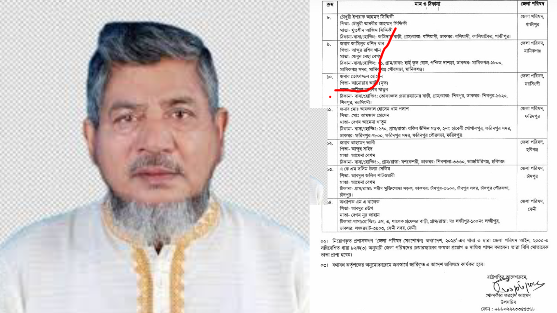 নরসিংদী প্রতিনিধি নরসিংদী জেলা পরিষদ প্রশাসক হিসেবে নিয়োগ পেয়েছেন জেলা বিএনপির সহসভাপতি তোফাজ্জল হোসেন মাষ্টার। তোফাজ্জল হোসেন মাস্টারের দীর্ঘ রাজনৈতিক জীবনে তিনি নরসিংদী জেলা বিএনপির দুঃসময়ের কান্ডারী হিসেবে পরিচিত। দীর্ঘ রাজনৈতিক জীবনে তিনি ২৭ বছর জেলা বিএনপির সাধারণ সম্পাদকের দায়িত্ব পালন করেছে। তোফাজ্জল হোসেন মাস্টার শিবপুর পৌরসভার (সাবেক চক্রদা ইউনিয়ন) Details..