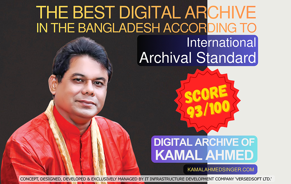 ‘ইন্টারন্যাশনাল আর্কাইভাল স্ট্যান্ডার্ড’ অনুযায়ী দেশসেরা ডিজিটাল আর্কাইভের স্বীকৃতির রিপোর্ট দেখতে ভিজিট করুন ‘ডিজিটাল আর্কাইভ অব কামাল আহমেদ’ (Digital Archive of Kamal Ahmed) https://kamalahmedsinger.com/
