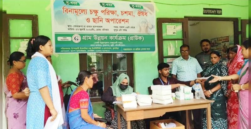 রবিবার (২৭জুলাই) উপজেলার সোনারুপা চা-বাগান হাসপাতালে অভিজ্ঞ ডাক্তার দ্বারা চা-বাগানের শ্রমিকসহ বিভিন্ন গ্রামের সুবিধাবঞ্চিত ৫ শতাধিক রোগীর মাঝে দিনব্যাপী চক্ষু শিবির ক্যাম্পিংয়ের শুভ উদ্বোধন করেন গ্রাউকের চেয়ারম্যান অশোক রঞ্জন পাল।