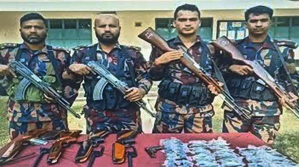 যশোর সীমান্তে বিজিবি’র বিশেষ অভিযানে চারটি ভারতীয় এয়ার গান ও একটি বিদেশি গ্যাস পিস্তলসহ বিপুল পরিমাণ সরঞ্জামাদি উদ্ধার হয়েছে। এসময় পরিত্যক্ত অবস্থায় চারটি ভারতীয় এয়ার গান, একটি বিদেশি গ্যাস পিস্তল, ৩০টি ট্রিগার স্প্রিং, ১৪টি ব্যাকসাইড ইউ এবং ২৯টি ফ্রন্ট সাইড টিপ উদ্ধার করা হয়।