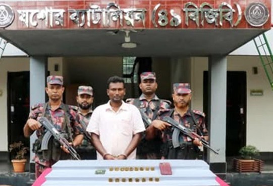 যশোরে ১৭টি সোনার বারসহ ১ যুবককে আটক করেছে বিজিবি। আটক সঞ্জয় সরকার ফরিদপুর জেলার জয়পাশা উপজেলার বোয়ালমারী থানার ধুলজোড়া গ্রামের অখিল সরকারের ছেলে। বৃহস্পতিবার সকাল সাড়ে ১১টায় যশোর–নড়াইল সড়কের দারাজহাট হাসান ফিলিং স্টেশনের সামনে থেকে তাকে আটক করা হয়। এ সময় তার কাছ থেকে যে সোনার বার উদ্ধার করা হয় তার ওজন এক কেজি ৯৩৪ গ্রাম।