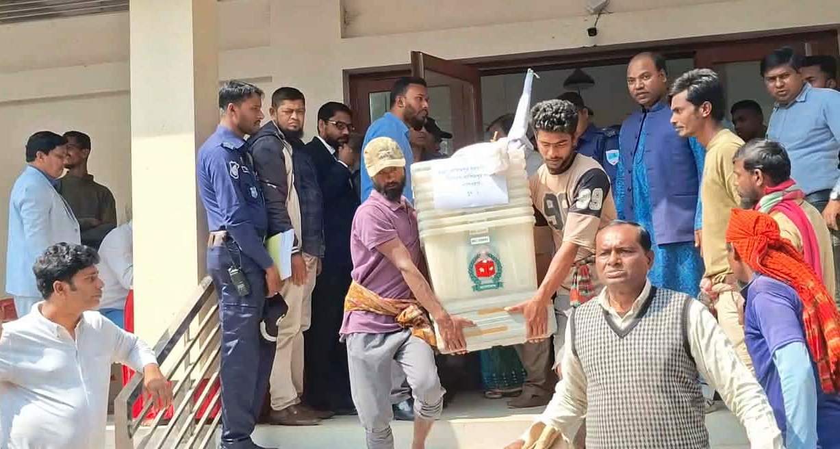 ব্যালট পেপার, স্বচ্ছ ব্যালট বাক্স, সিল, কলমসহ ভোটগ্রহণ সামগ্রী প্রদান করা হয়। জেলার ৯টি উপজেলার ৫৪৭ কেন্দ্রের জন্য একযোগে এই নির্বাচনী সামগ্রী পাঠানো হয়। নছিমন, ভ্যান, ইজিবাইকসহ সুবিধাজনক যানবাহনে করে কেন্দ্রে ভোটগ্রহণ সামগ্রী নিয়ে যাচ্ছেন আনসার আইনশৃঙ্খলা বাহিনীর সদস্য ও প্রিজাইডিং কর্মকর্তারা। কেন্দ্রের দূরত্ব অনুযায়ী সন্ধ্যার মধ্যে এসব নির্বাচনী সামগ্রী প্রতিটি কেন্দ্রে পৌঁছে যাবে।