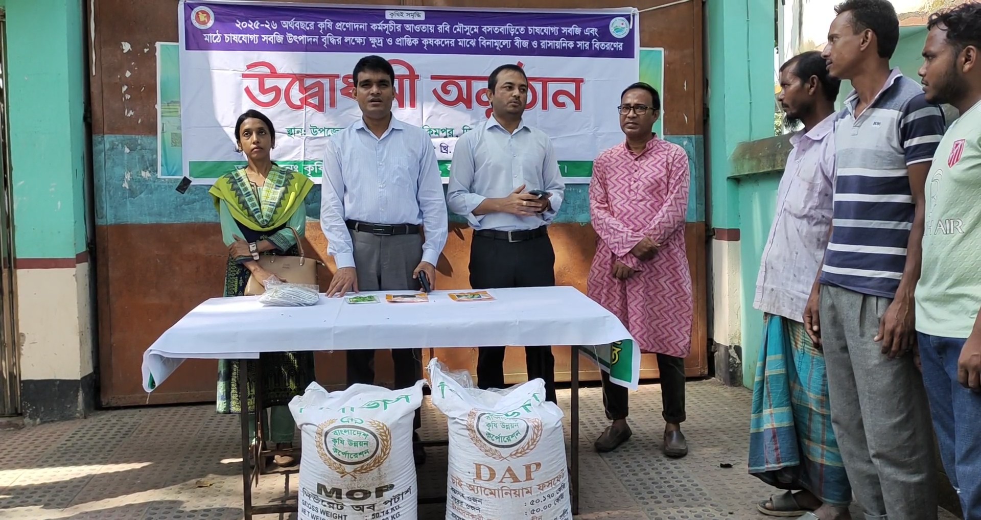 দিনাজপুরের হাকিমপুরে সরকারি কৃষি প্রণোদনা কর্মসূচির আওতায় ৪৬০ জন ক্ষুদ্র ও প্রান্তিক কৃষকদের মধ্যে বিনামূল্যে সবজি বীজ ও রাসায়নিক সার বিতরণ করা হয়েছে।